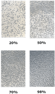 - 쇼트피닝의 품질을 나타내는 커버리지(Coverage)는 이 딤플이 표면을 얼마나 균일하게 덮었는지를 나타내는 지표입니다